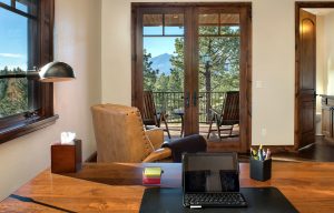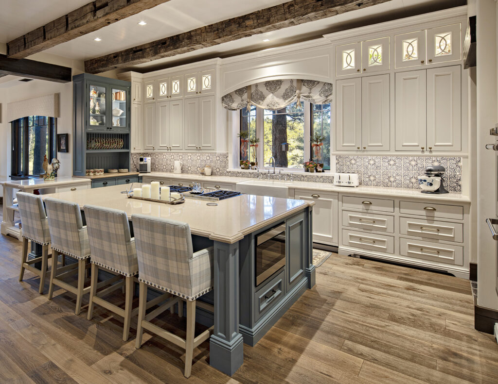 dark rustic woods combine with lighter, refined finishes to create an inviting and spacious mountain home